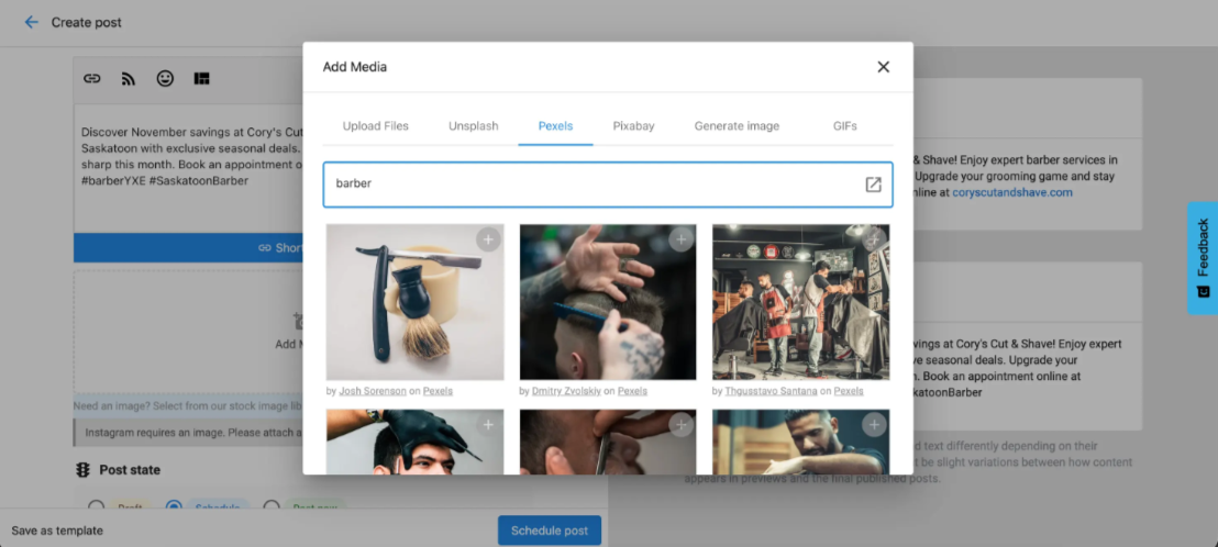 You now have direct access to Pexels’ entire library of high-quality, royalty-free images right inside Social Marketing — no extra downloads or apps needed.
