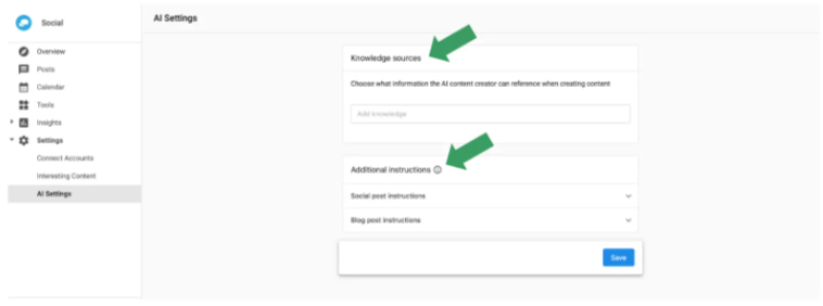 Business App → Social → Launch → AI Settings